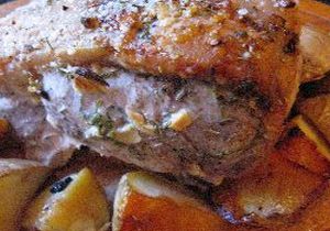 Piekarnik nagrzać do temperatury 200 stopni C. Mięso umyć, osuszyć. Przyprawy wymieszać z oliwą i uzyskaną pastą natrzeć dokładnie mięso. Dociąć odpowiednio duży kawałek folii aluminiowej, zawinąć weń mięso, ułożyć na blasze do pieczenia. Tak przygotowane mięso piec 15 minut w nagrzanym piekarniku, następnie obniżyć temperaturę do 150 stopni i piec aż mięso będzie miękkie. Pod koniec pieczenia rozchylić folię aby mięso mogło się przyrumienić. Podawać z pieczonymi ziemniakami.