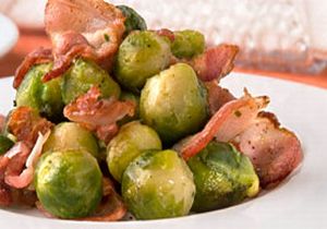 Kapusta brukselka duszona z boczkiem