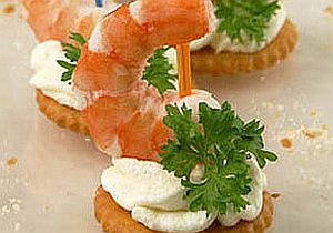 Ser przyprawić solą, pieprzem i sokiem z cytryny, ma mieć wyraźnie pikantno kwaśny smak. Na krakersie ułożyć warstwę sera, wbić w niego po kilku minutach (krakers lekko zwilgotnieje) wykałaczkę z nabitą nań krewetką, ozdobić gałązką koperku lub natki pietruszki. Ser kozi można zastąpić plasterkiem sera pleśniowego, krewetki owocem, wędzonym łososiem itd.