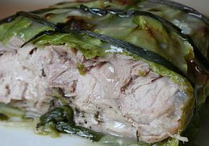 wodzie zieloną cebulkę. Układać po dwa liście kapusty w taki sposób aby ich brzegi zachodziły na siebie, ułożyć na nich 2 lub 3 polędwiczki, zawinąć w liście, a te obwiązać blanszowanymi piórkami cebulki. Tak przygotowane pakiety układać na blasze do pieczenia, polać bulionem i piec w piekarniku nagrzanym do 180 stopni C przez około 30 minut. Podczas pieczenia polewać pakiety powstałym sosem i obracać. Powstały sos odlać do rondla, dodać koncentrat pomidorowy, przyprawić do smaku, gotować kilka minut. Sos zagęścić mąką rozmieszaną z zimną wodą. Tak przyrządzone polędwiczki znakomicie smakują z młodymi ziemniaczkami i buraczkami z chrzanem. Sos podawać w sosjerce.