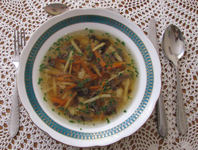Przygotować wywar z porcji rosołowej i wołowiny. Gotować na wolnym ogniu przez 1 godz. (ja szumu nie zbieram). Po godzinie dodać marchewkę, pietruszkę, seler, kapustę, por. Gotować jeszcze 0,5 godziny. Wybrać warzywa i mięso. Przecedzić wywar przez gazę. Klarowny wywar doprawić pieprzem i niewielką ilością soli (później dodawany będzie słony sos sojowy). Grzybki mun namoczyć w wodzie na 15 min., po czym gotować przez 18 min., odcedzić, przestudzić i pokroić w paseczki szerokości ok. 3-4 mm. Drugą marchewkę i pietruszkę pokroić w cieniutkie paseczki (na zapałkę). Na patelni rozgrzać oliwę. Wsypać pokrojoną marchew, pietruszkę i lekko podsmażyć. Warzywa powinny być tylko szkliste, muszą być chrupiące. Przygotować makaron, najlepiej najcieńsze nitki. Do talerza wlać łyżkę sosu sojowego (można więcej wg uznania), dodać makaron, porcję chrupiących warzyw i porcję grzybków mun. Zalać rosołem i posypać drobno posiekanym szczypiorkiem. Smacznego.