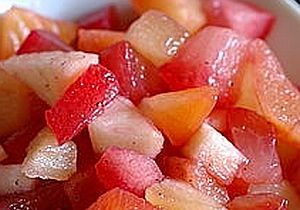 Sól, pieprz, amchur i jeśli ktoś lubi szczypta kminku w proszku wymieszać. Rozdrobnione owoce, sok pomarańczowy i przyprawy wymieszać w salaterce. Schłodzić i podawać.