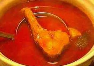 Ryby wyfiletować, dokładnie umyć. Pozostałe po filetowaniu części ryb tj. kręgosłup. Głowę, ogon zalać wodą, dodać pokrojoną w plastry cebulę, doprowadzić do wrzenia. Gdy wywar zacznie wrzeć dodać paprykę w proszku i gotować powoli 90 minut. Po tym czasie wywar przecedzić, przyprawić solą do smaku, dodać podzielone na porcje filety z karpia i powoli gotować około 30 minut, nie mieszać podczas gotowania. Mieszanie zastępujemy wstrząsaniem rondla. Podawać z białym pieczywem.