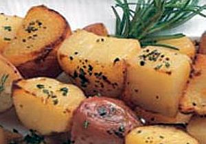 Czyste ziemniaki zalać wodą, doprowadzić do wrzenia, gotować 10 minut. Tak przygotowane ziemniaki lekko schłodzić, jeśli są duże przekroić na połowę lub 4 części. Pozostałe składniki wymieszać dokładnie w miseczce. Ziemniaki nabić na szpadki do grillowania, używając pędzelka posmarować dokładnie oliwą z dodatkami. Piec na średnio gorącym grillu aż zmiękną. Podawać z ulubionymi dodatkami.