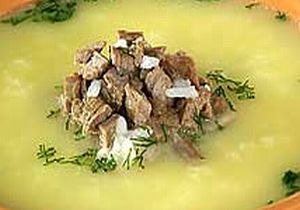 Umyte i osuszone mięso pokroić w kostkę, zalać 4 szklankami wody, powoli gotować 30 minut, dodać ryż i gotować nadal aż ryż zmięknie. Żółtka, jogurt i sok z cytryny zmiksować. Powoli wlać do powoli gotującej się zupy stale mieszając. Przyprawić do smaku. Przed podaniem posypać zieleniną.